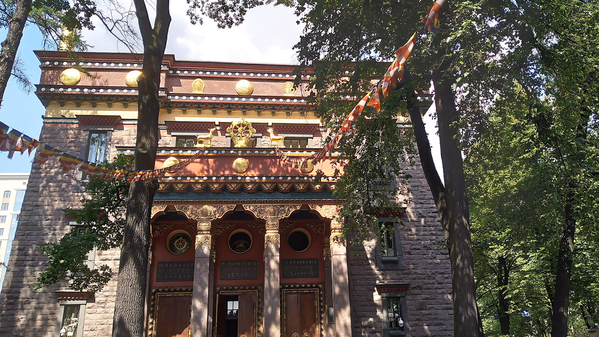При этом он является одним из самых дорогих буддистских храмов в Европе. Дацан построен из колотого гранита, украшен витражами Николая Рериха, которые изображают восемь благих буддийских символов.